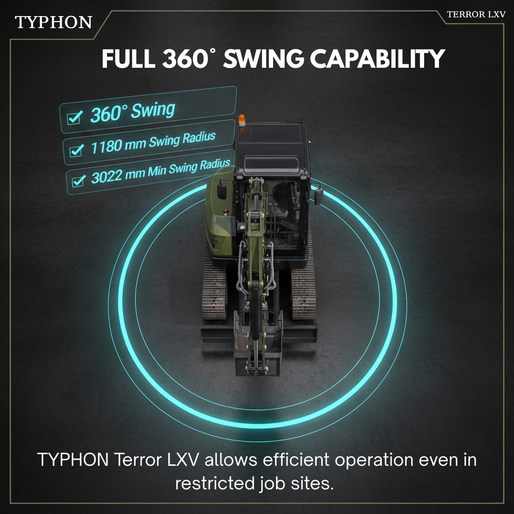 One of the standout features of the TERROR LXV is its boom swing capability combined with full 360° body rotation.