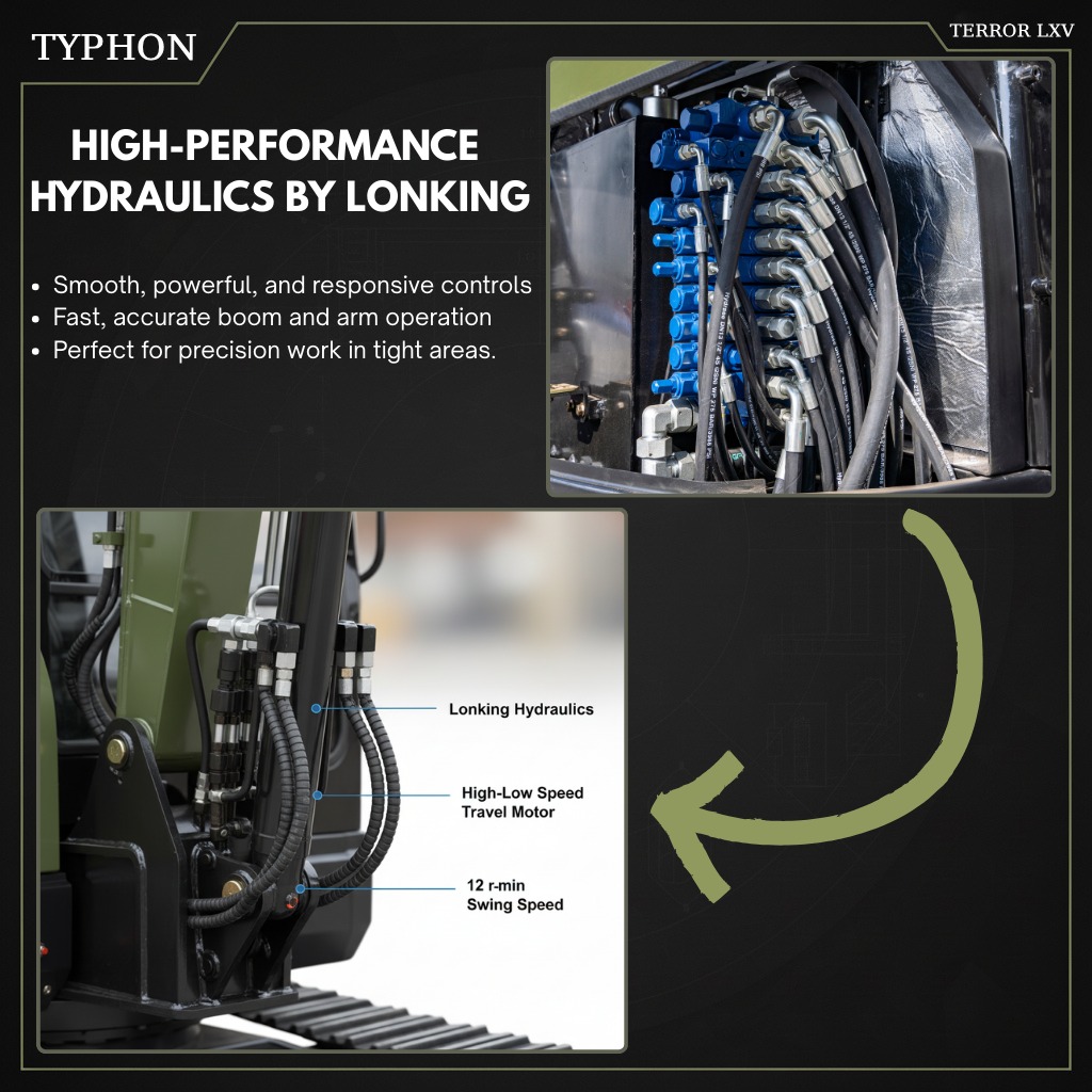 Modern construction projects demand machines that are powerful, efficient, and versatile. The TYPHON TERROR LXV 6.6 Ton Excavator is designed to meet these demands with advanced engineering, strong digging performance, and operator-focused features.